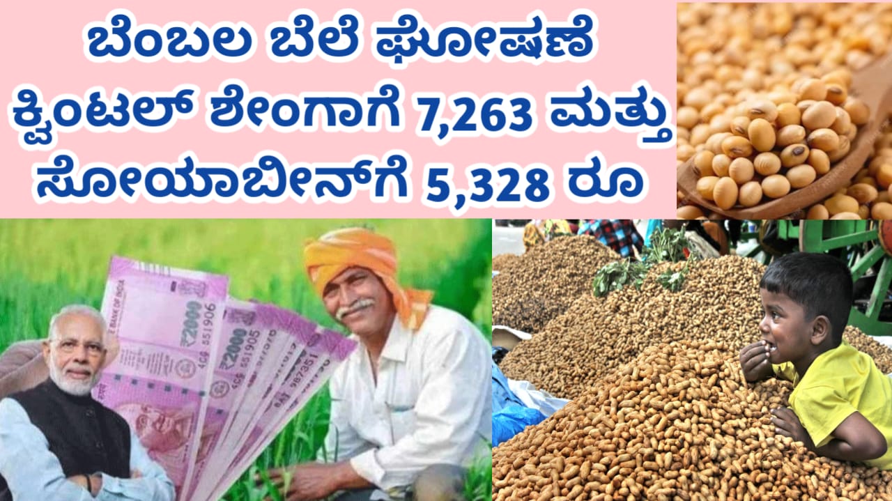 ಬೆಂಬಲ ಬೆಲೆ ಘೋಷಣೆ ಕ್ವಿಂಟಲ್‌ ಶೇಂಗಾಗೆ 7,263 ಮತ್ತು  ಸೋಯಾಬೀನ್‌ಗೆ 5,328 ರೂ
