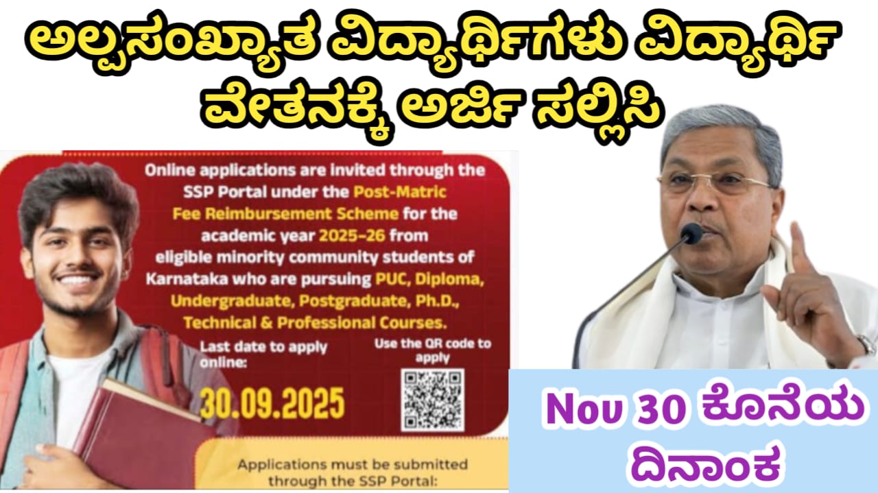 ಅಲ್ಪಸಂಖ್ಯಾತ ವಿದ್ಯಾರ್ಥಿಗಳು ವಿದ್ಯಾರ್ಥಿ ವೇತನಕ್ಕೆ ಅರ್ಜಿ ಸಲ್ಲಿಸಿ, Nov 30 ಕೊನೆಯ ದಿನಾಂಕ