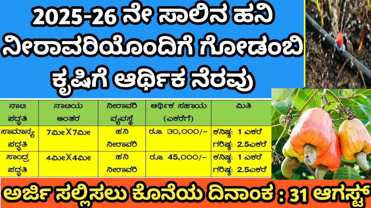 2025-26 ನೇ ಸಾಲಿನ ಹನಿ ನೀರಾವರಿಯೊಂದಿಗೆ ಗೋಡಂಬಿ ಕೃಷಿಗೆ ಆರ್ಥಿಕ ನೆರವು